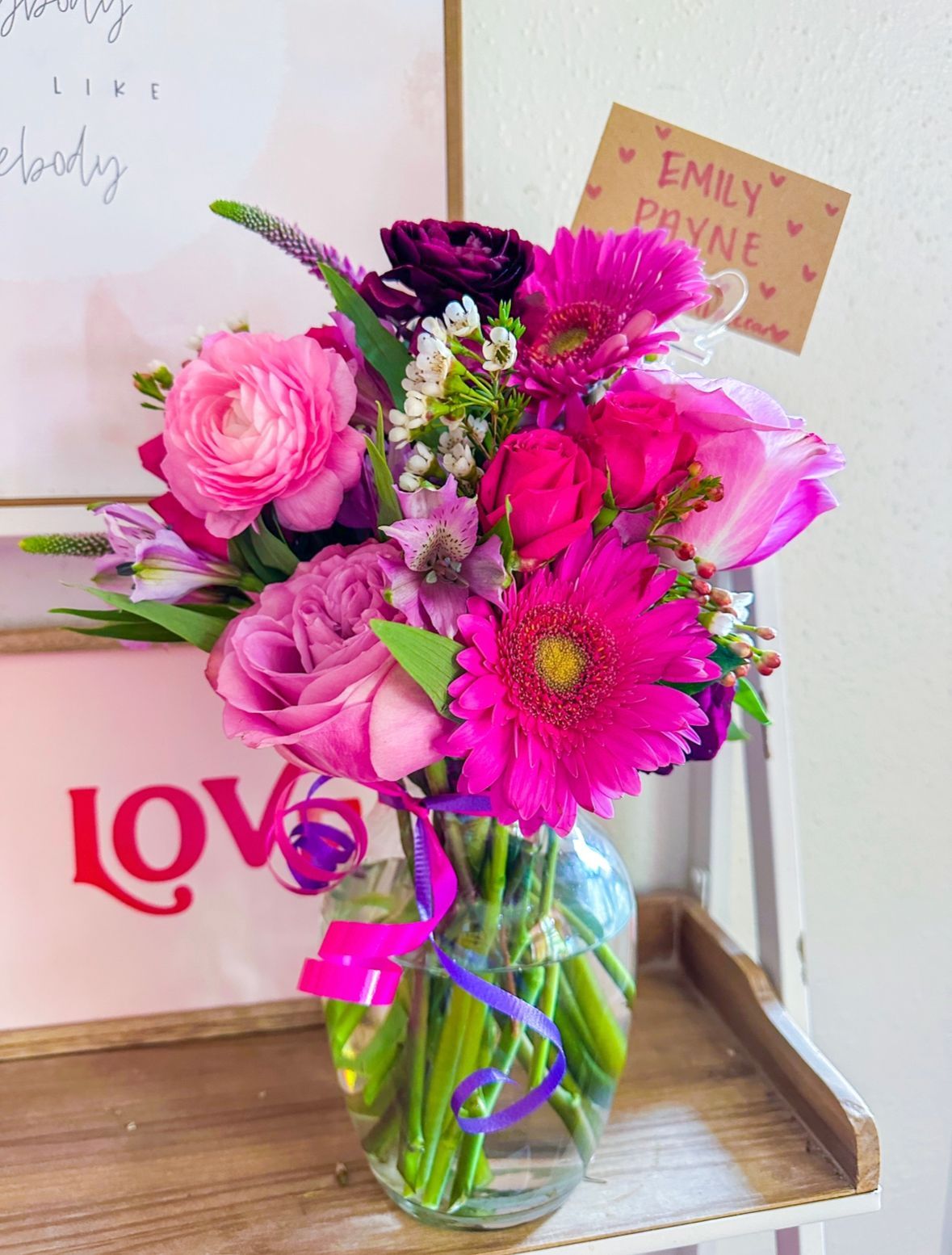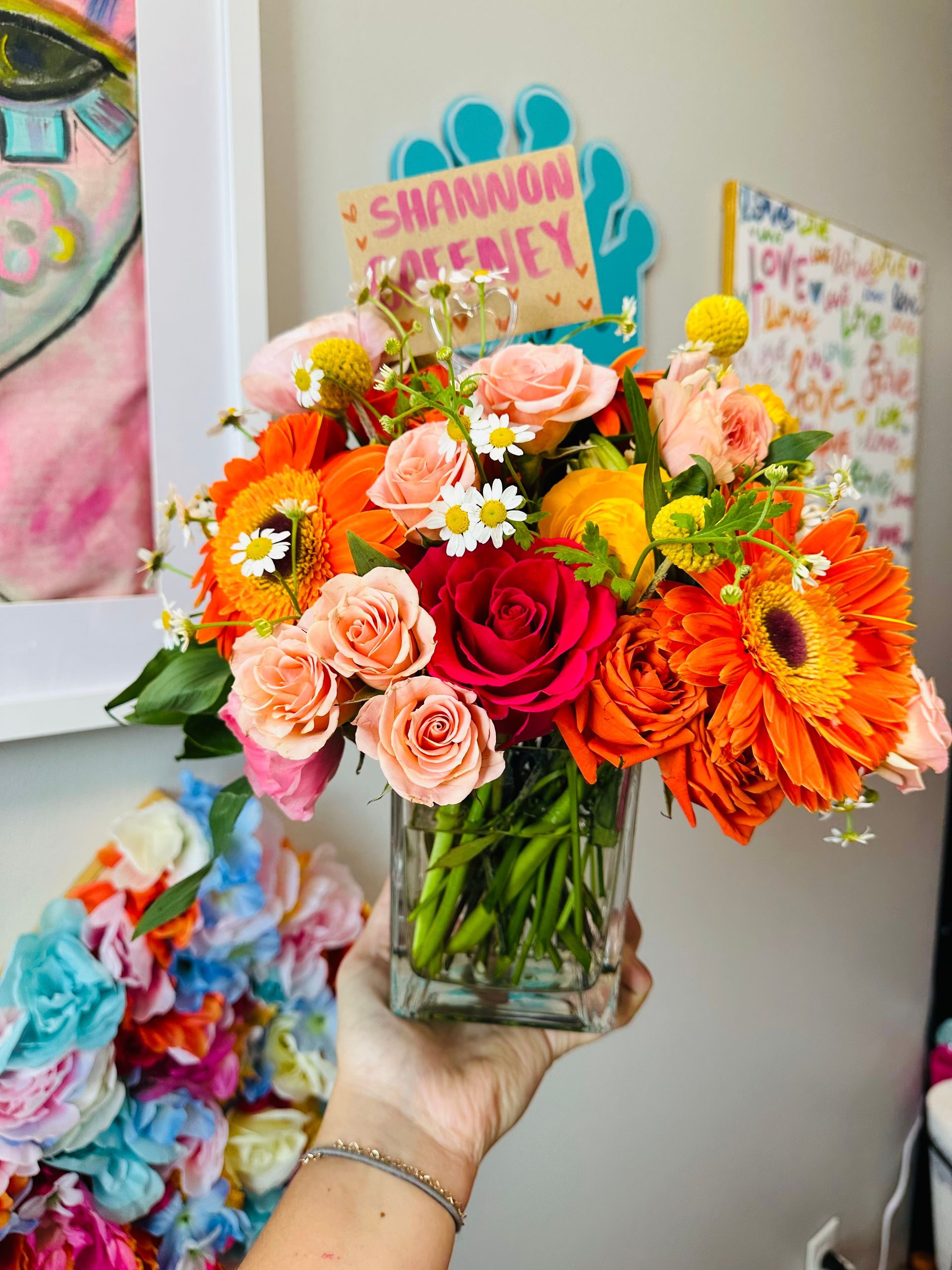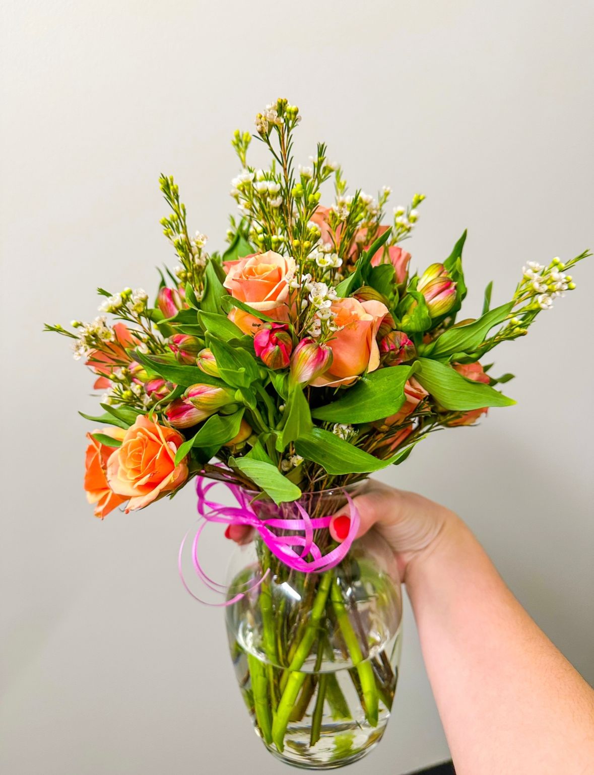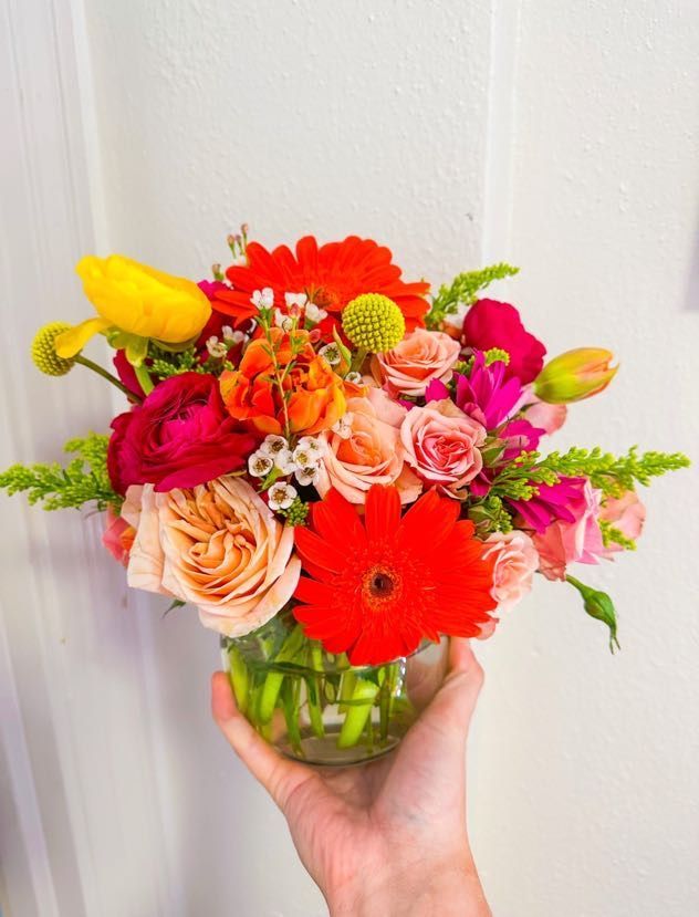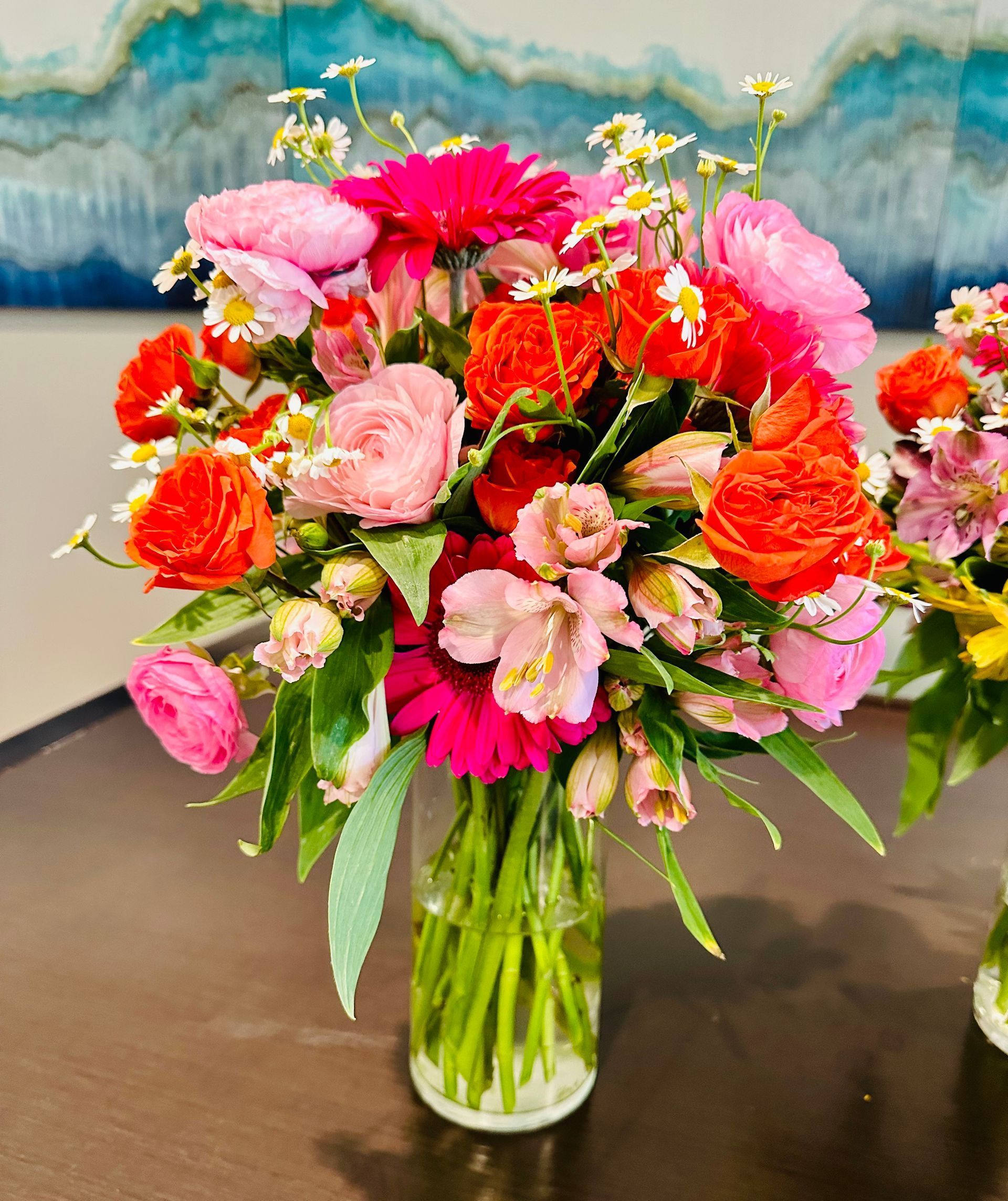 These arrangements are a bit fuller, with 5-6 different types of flowers!