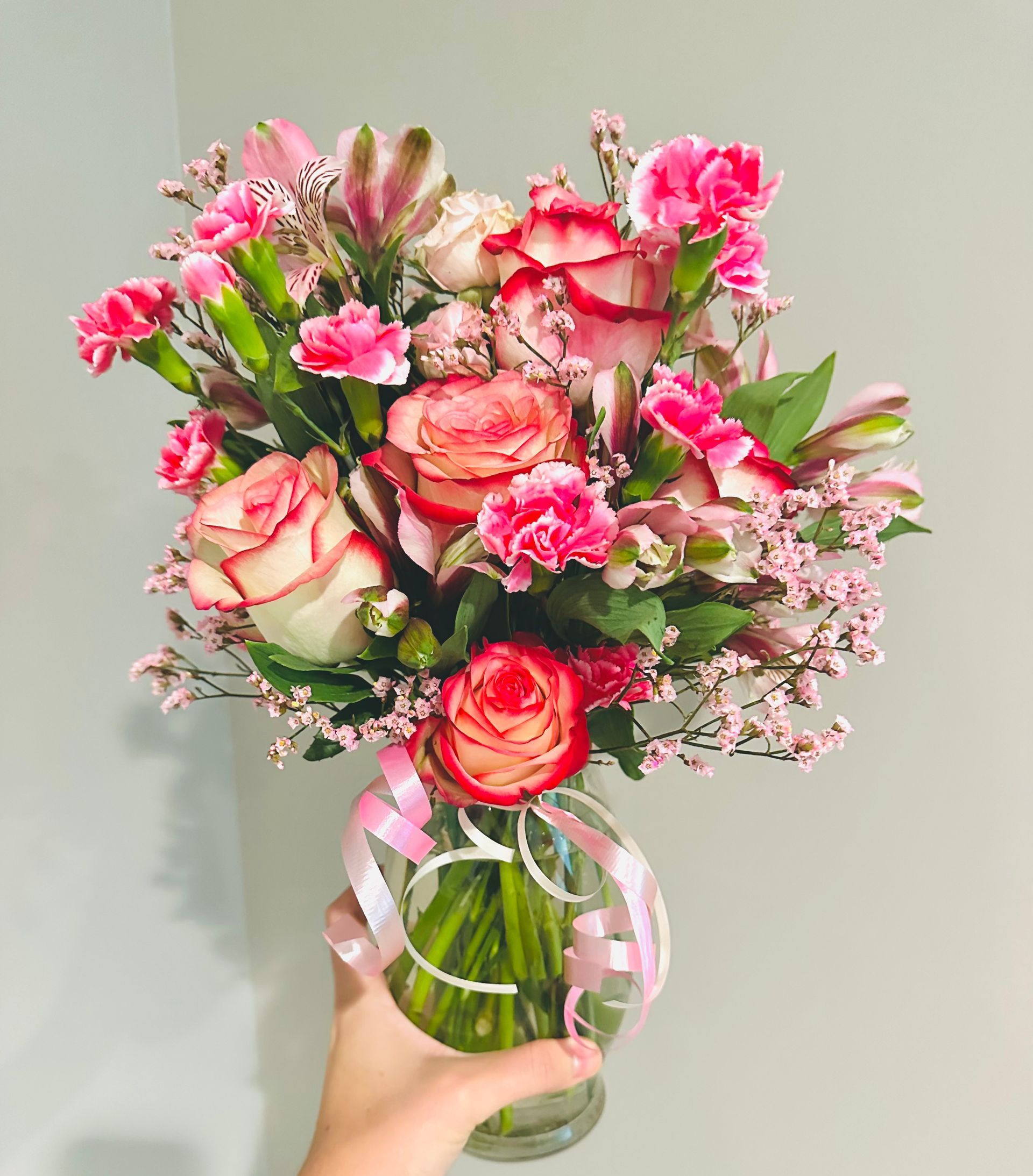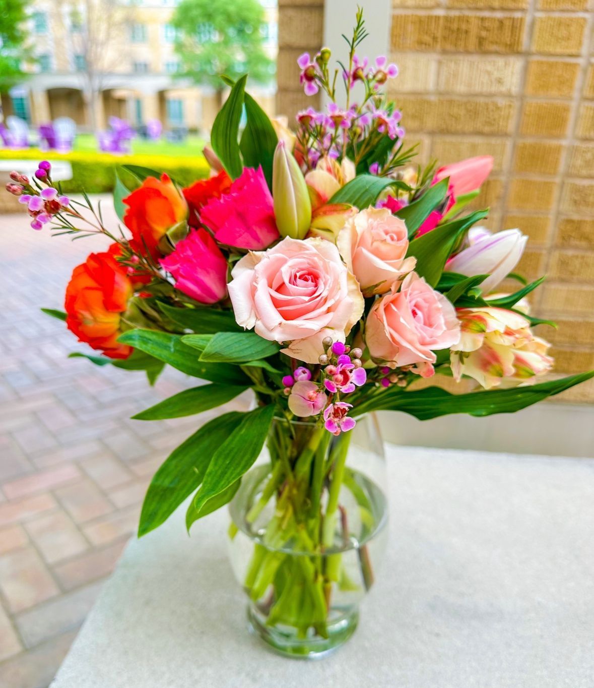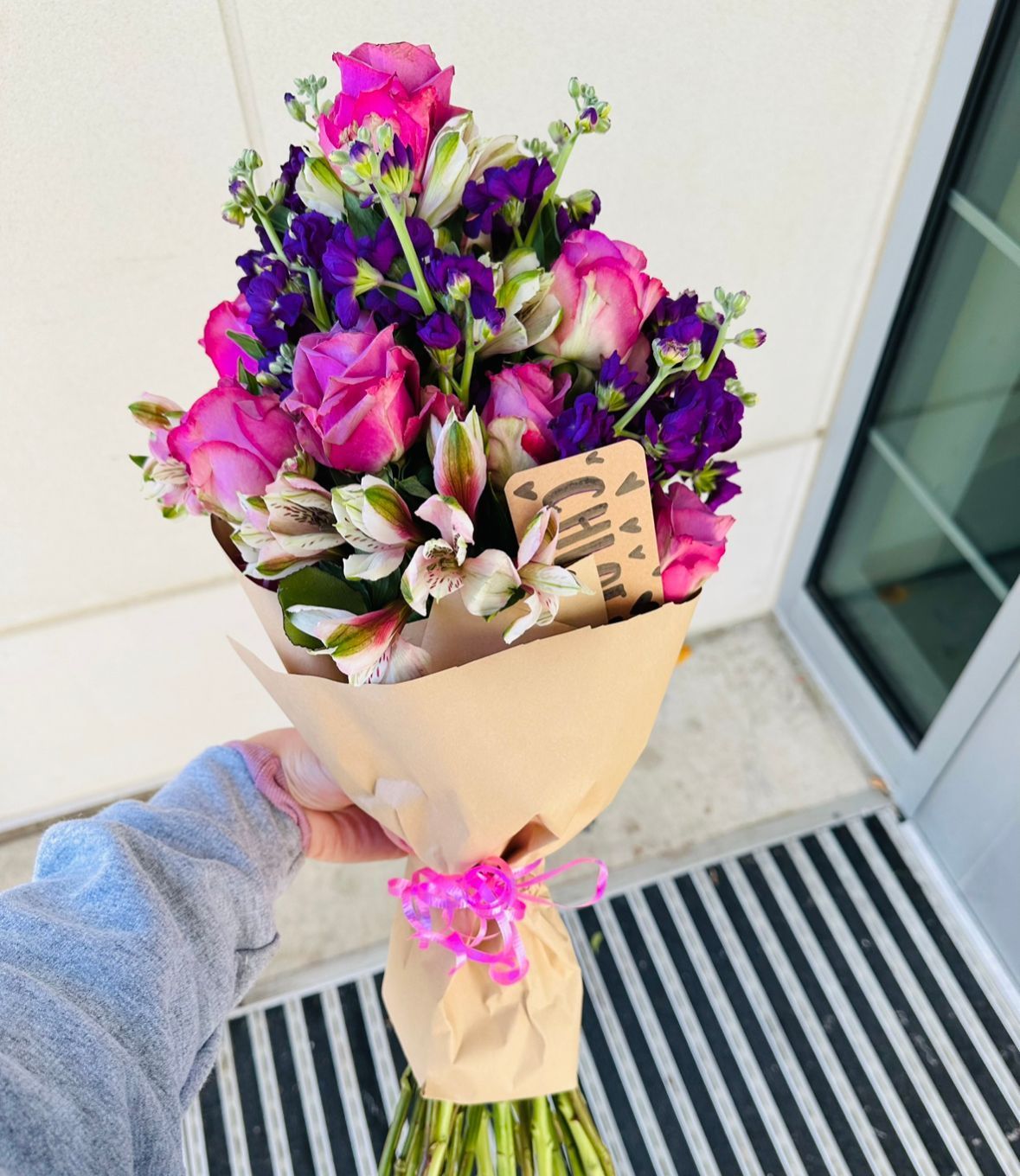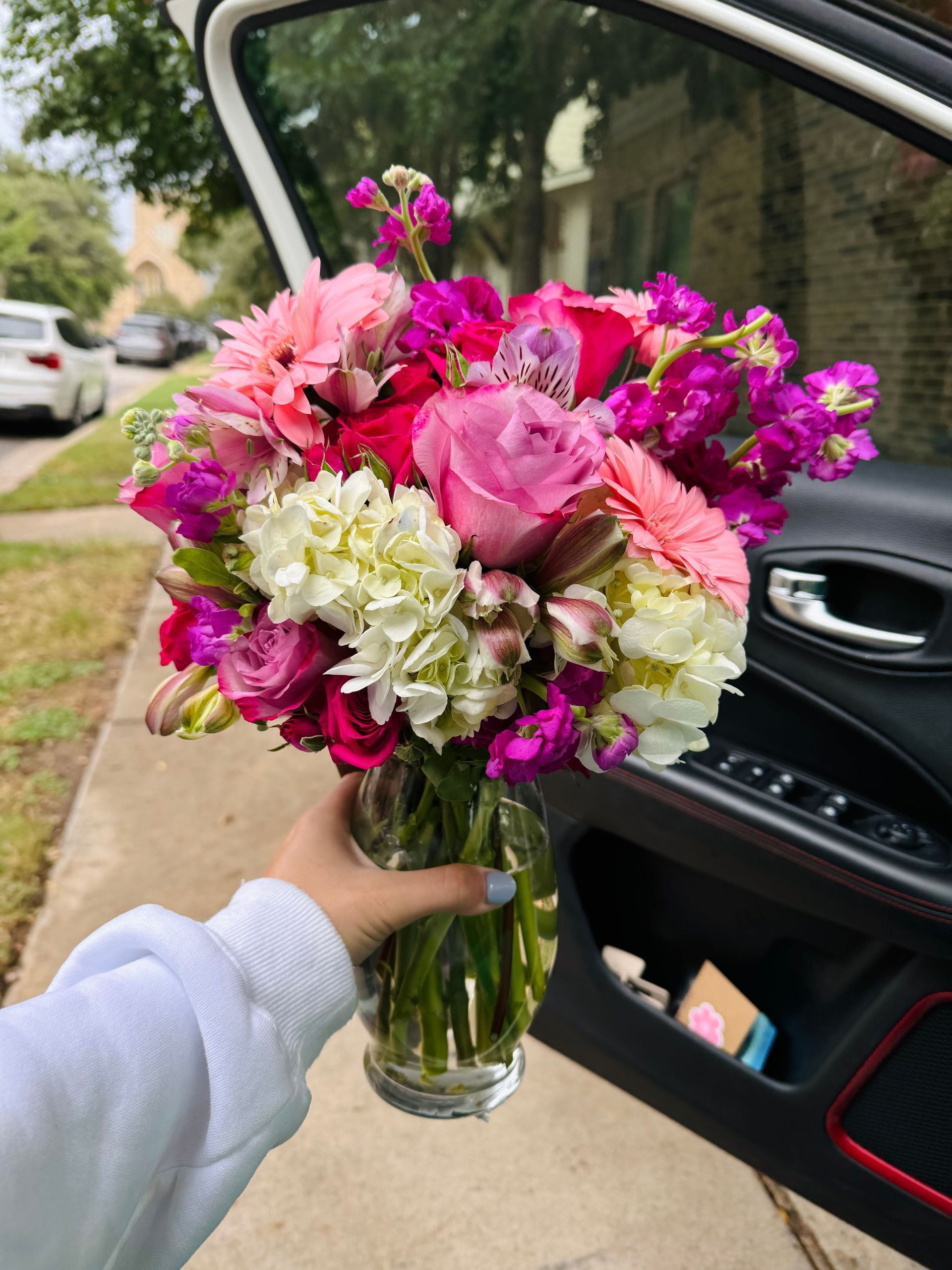 These arrangements are a bit fuller, with 5-6 different types of flowers!
