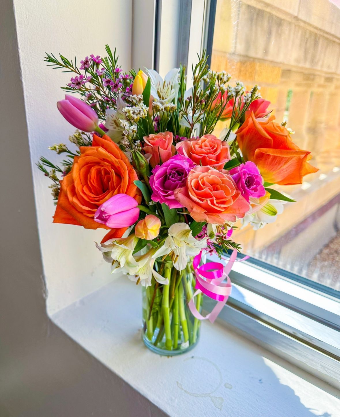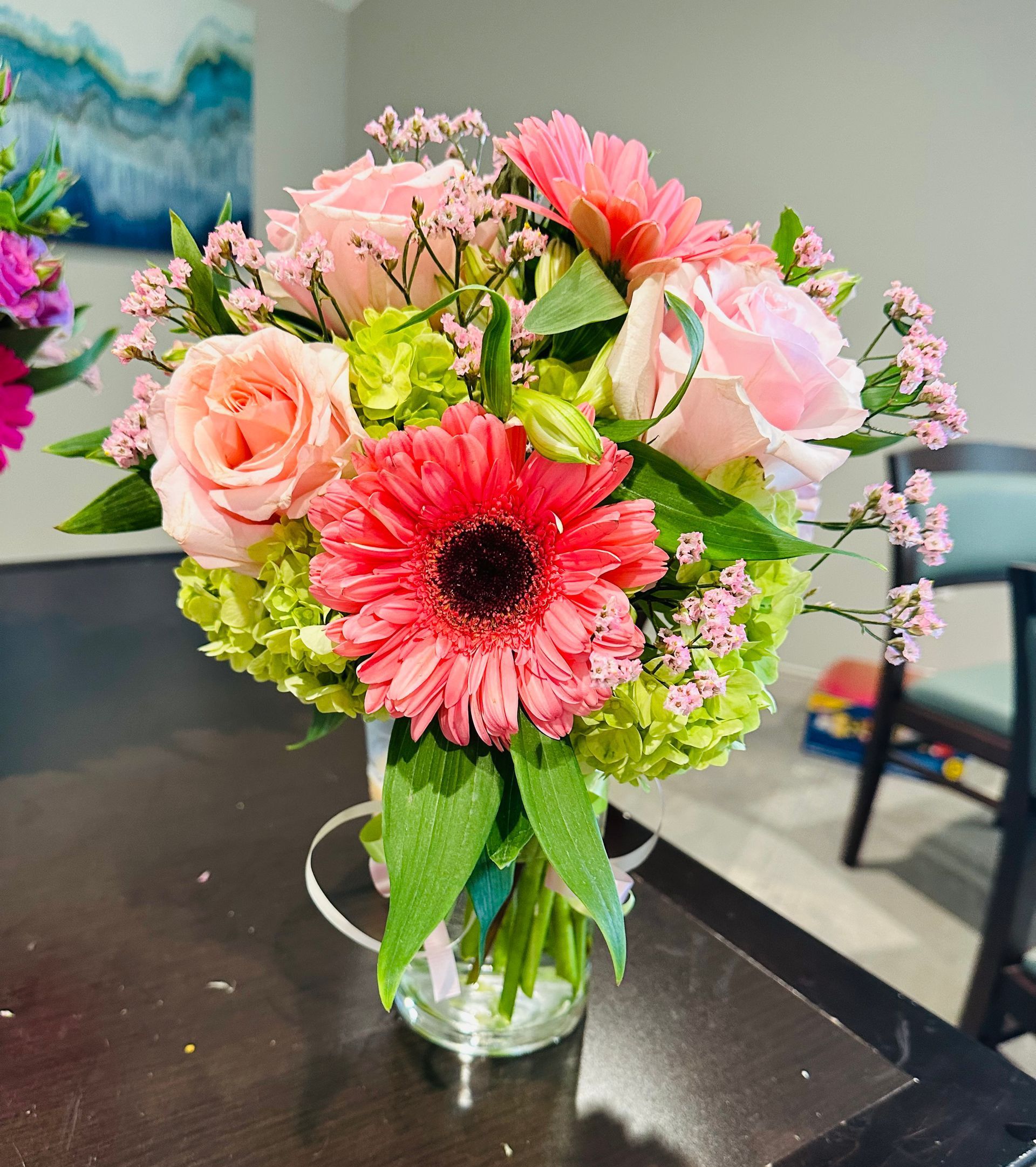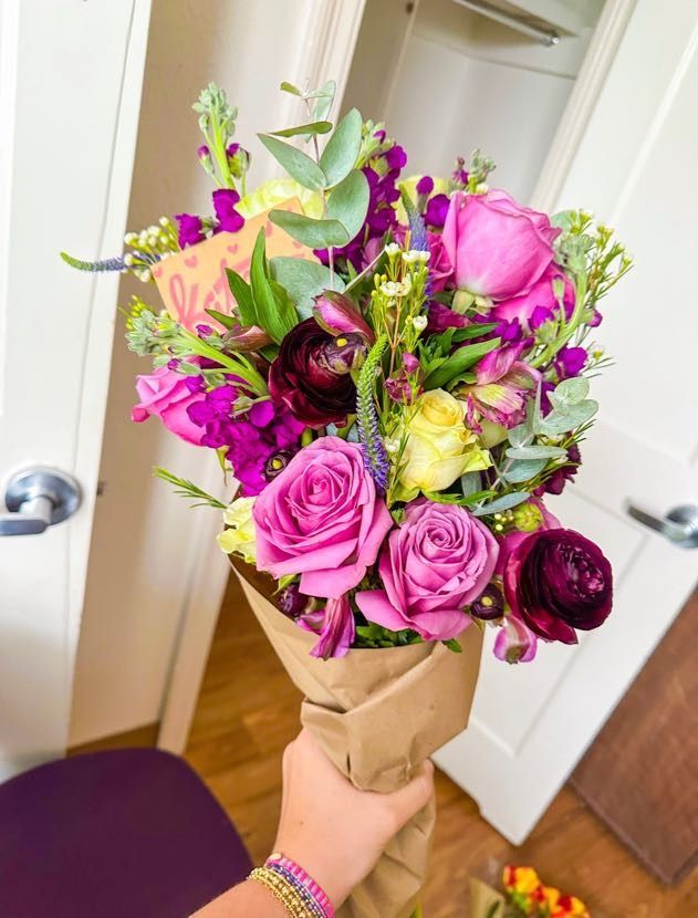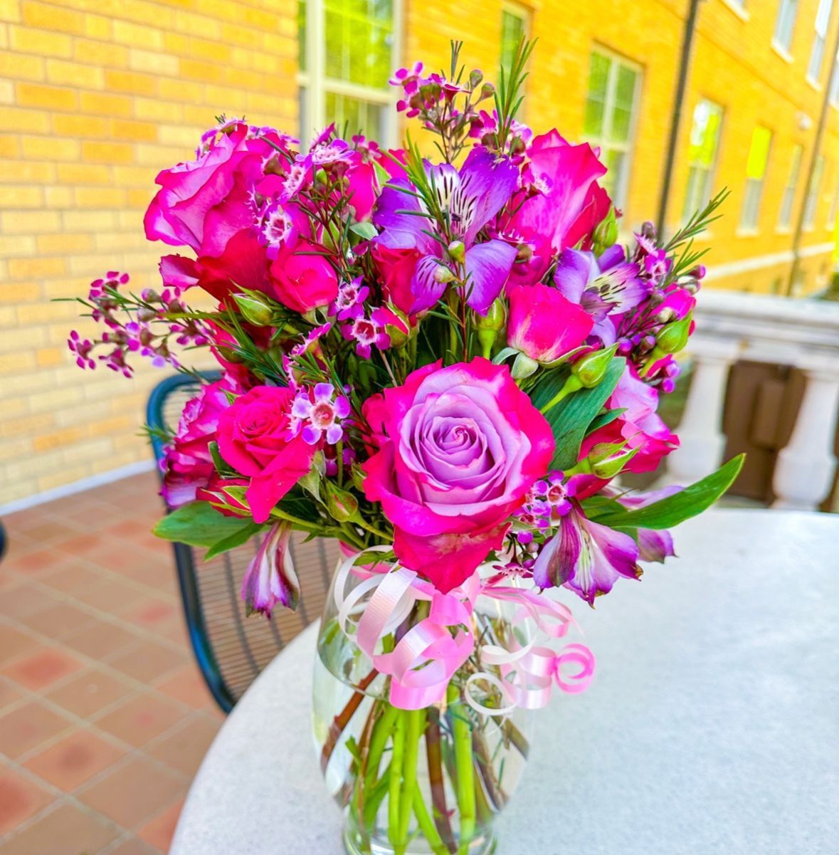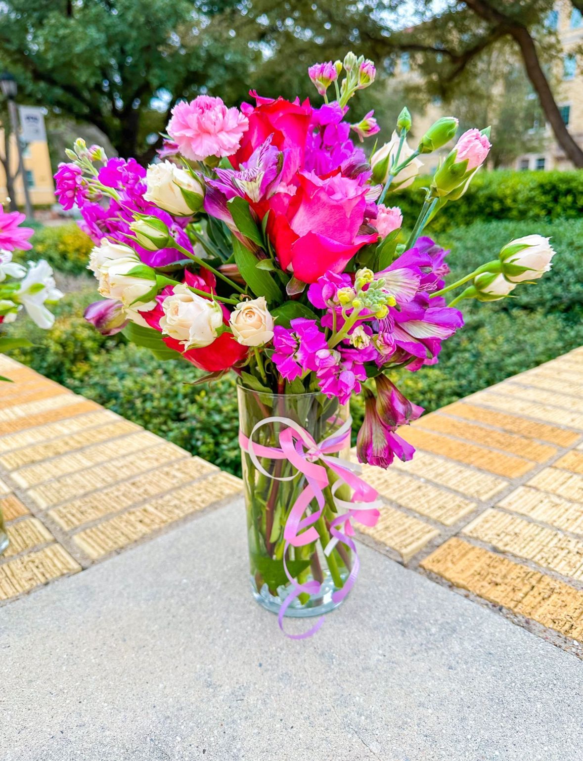These arrangements are a bit fuller, with 5-6 different types of flowers!