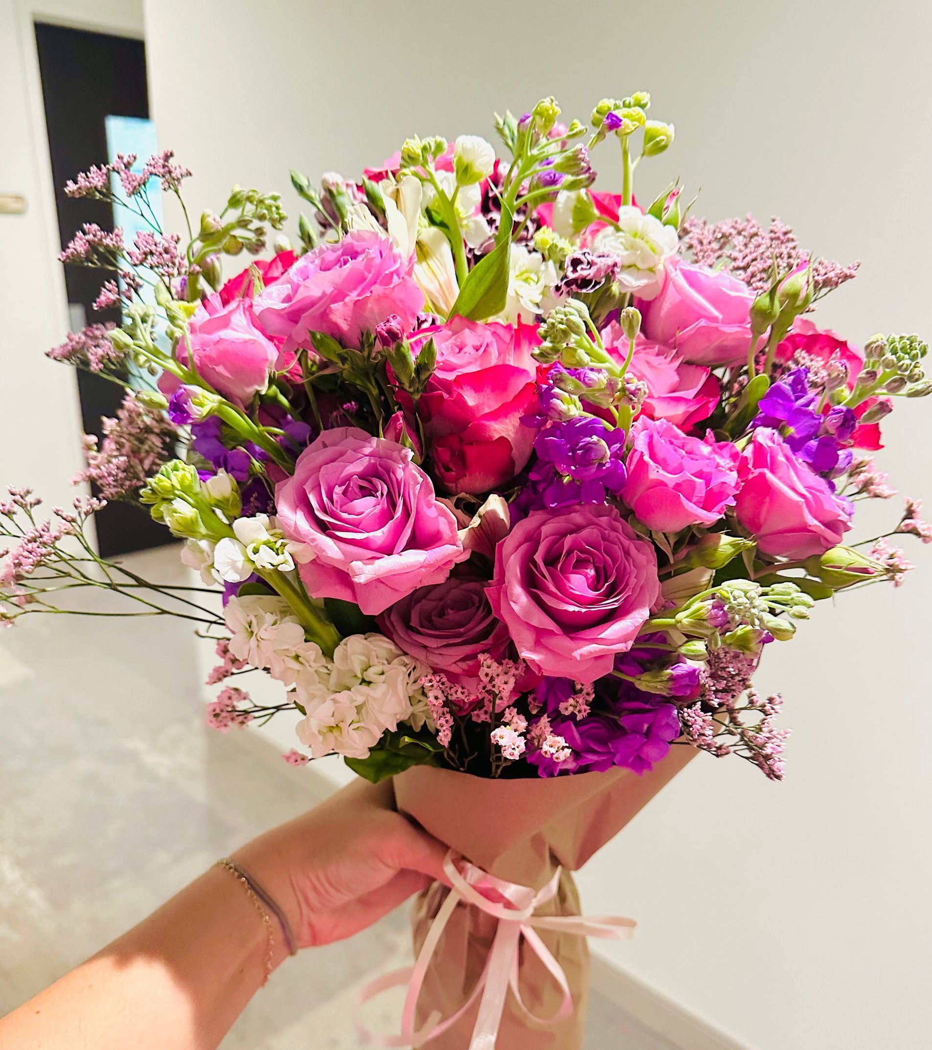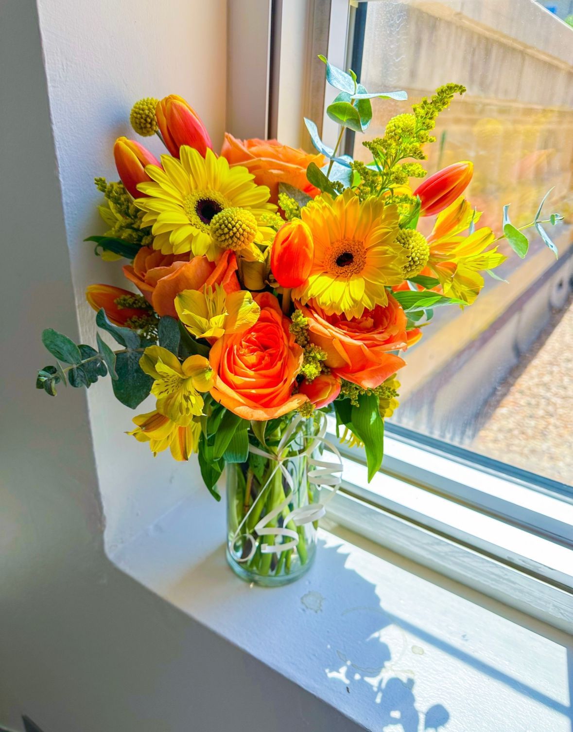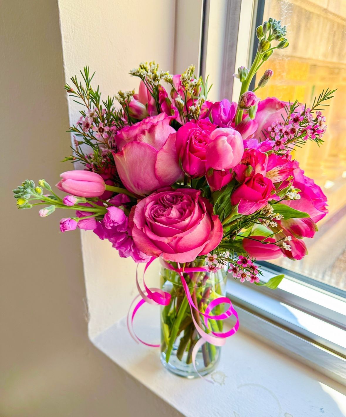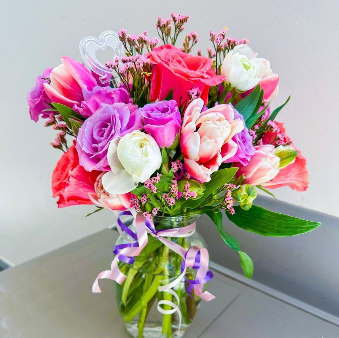 These arrangements are a bit fuller, with 5-6 different types of flowers!