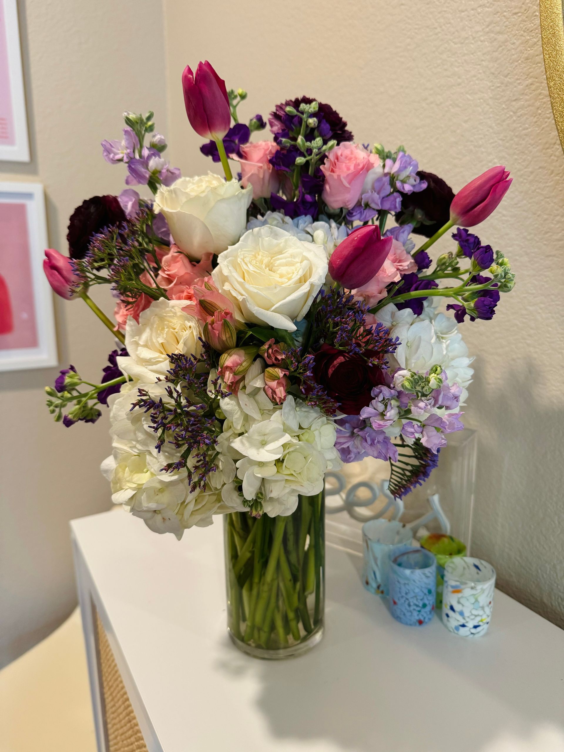 These arrangements are filled with many flowers and in bigger vases by request! If you have any ideas I can create something similar to it!! For special occasions and events:)
